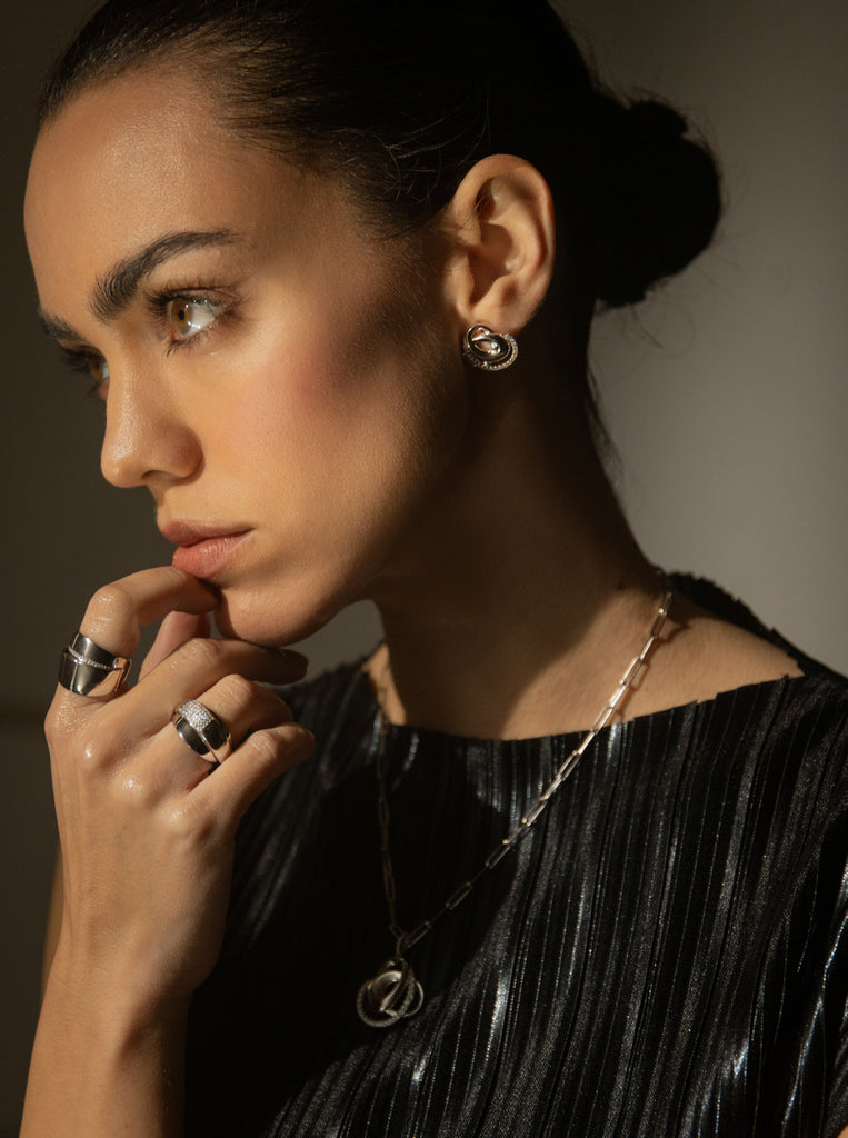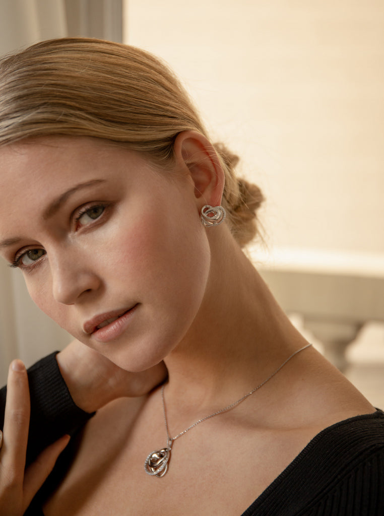 Pendientes originales diseño anudado con circonitas. Un diseño de tendencia imprescindible en tu joyero esta temporada; combinará con todos tus outfits. Pendientes originales de plata, diseño anudado con detalle de circonitas blancas. Ideal para combinar con el colgante a juego. ¡Te encantará!